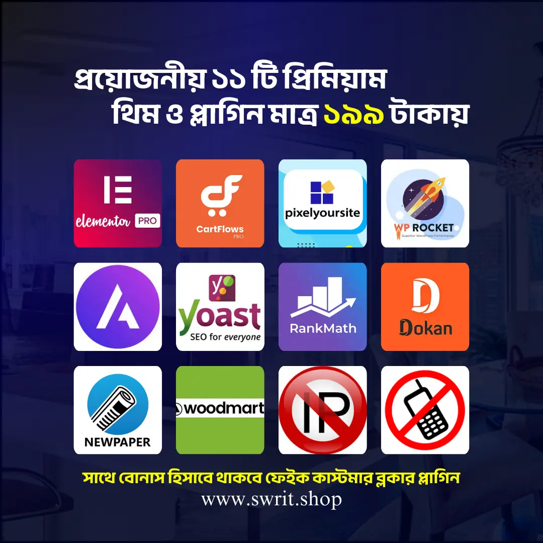 আপনার ওয়েবসাইটকে নতুন উচ্চতায় নিয়ে যেতে চান? 🏆 আমরা এনেছি ৯টি প্রিমিয়াম ওয়ার্ডপ্রেস প্লাগিন এবং থিম, মাত্র 199 টাকায় – সীমিত সময়ের অফার! 🚀 পারফরম্যান্স বুস্ট, ফাস্ট লোডিং, SEO র্যাঙ্কিং, এবং প্রফেশনাল ডিজাইন – সবকিছু এক প্যাকেজে! 🛡️ ১০০% সুরক্ষিত ও ভাইরাস-মুক্ত – আমাদের টিম প্রতিটি প্লাগিন এবং থিম নিজেরা পরীক্ষা করে নিশ্চিত করেছি, তাই আপনার সাইট থাকবে সম্পূর্ণ নিরাপদ!